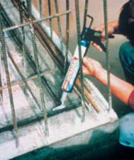 Impermeabilización de junta en estructura de hormigón, en contacto con el agua, mediante aplicación con pistola de masilla hidroexpansiva monocomponente. |