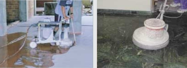 Pulidora para pavimentos de piedra natural o de terrazo, compuesta por platos giratorios a los que se acoplan una serie de muelas abrasivas, refrigeradas con agua. |