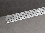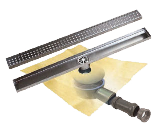 Kit Lineal Basic Squares 50 "REVESTECH", formado por lámina impermeabilizante flexible tipo EVAC Dry40 de 250x250 mm, con unión termosellada a el sumidero sifónico de PVC de 60 mm de altura, salida horizontal de 40 mm de diámetro, con rejilla para empotrar de acero inoxidable, modelo Cuadros de 498x57 mm, canaleta de drenaje de acero inoxidable, de 500x61 mm y lámina impermeabilizante flexible tipo EVAC Dry40 de 1500x2000 mm compuesta de una doble hoja de poliolefina termoplástica con acetato de vinil etileno, con ambas caras revestidas de fibras de poliéster no tejidas, de 0,48 mm de espesor y 290 g/m², según UNE-EN 13956, para impermeabilización y desagüe de ducha de obra.