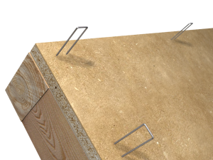 Doble tablero estructural de madera para forjado, sobre estructura de madera, compuesto por tablero inferior para uso en ambiente seco, tipo P4, según UNE-EN 312, de 2400x900 mm y 30 mm de espesor, machihembrado en sus cuatro cantos; rastrel de 60x40 mm de sección, de madera de pino pinaster (Pinus pinaster), tratada en autoclave, con clase de uso 4, según UNE-EN 335, acabado cepillado, con humedad inferior al 20% fijados con tornillos y tablero superior para uso en ambiente seco, tipo P4, según UNE-EN 312, de 2400x900 mm y 30 mm de espesor, machihembrado en sus cuatro cantos. Incluso grapas de acero al carbono galvanizado electrolítico, para fijación de los tableros. | ||