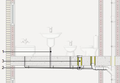 Red interior de evacuación, para cuarto de baño con dotación para: inodoro, lavabo sencillo, bañera, bidé, realizada con tubo de PVC, serie B para la red de desagües. | ||