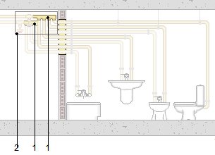 Colector de plástico (PPSU), en H, con entrada de 20 mm de diámetro y tres derivaciones, una de 20 mm y dos de 16 mm de diámetro. | ||