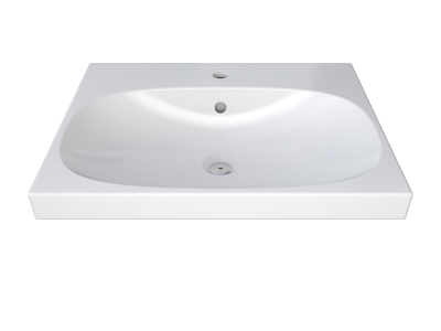 Lavabo mural, de arcilla refractaria, acabado termoesmaltado, color blanco, de 600x482x170 mm, con un orificio para la grifería y rebosadero, según UNE 67001.