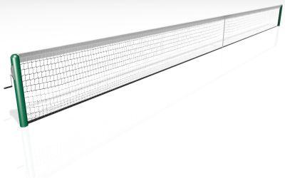 Equipamiento deportivo para pista de tenis, compuesto de red de nylon reforzado, postes de apoyo y accesorios reglamentarios, según normativa federativa.