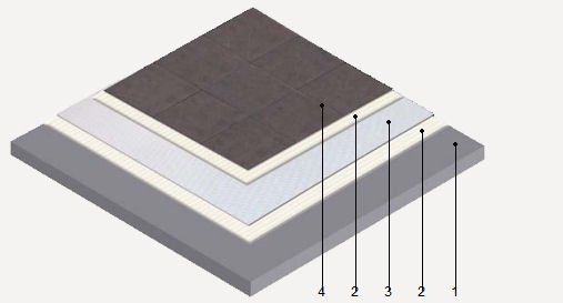 NSN010 Desolidarización bajo pavimento cerámico o de piedra natural, con láminas de elastómero de celdas cerradas
