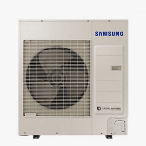 Unidad exterior de aire acondicionado, sistema VRF, para gas R-410A, gama Mini DVM S, modelo AM040BXMDEH/EU "SAMSUNG", alimentación monofásica (230V/50Hz), potencia frigorífica 12,1 kW (temperatura de bulbo seco del aire interior 27°C, temperatura de bulbo húmedo del aire interior 19°C, temperatura de bulbo seco del aire exterior 35°C, temperatura de bulbo húmedo del aire exterior 24°C), potencia calorífica 12,1 kW, (temperatura de bulbo seco del aire interior 20°C, temperatura de bulbo húmedo del aire interior 15°C, temperatura de bulbo seco del aire exterior 7°C, temperatura de bulbo húmedo del aire exterior 6°C), nº máximo de unidades interiores conectables 6, rango de capacidad de unidades interiores conectables desde 5,6 hasta 15,7 kW, consumo eléctrico en refrigeración 3,9 kW, consumo eléctrico en calefacción 3,23 kW, EER 3,1, COP 3,75, SEER 7,6, SCOP 4,2, con compresor BLDC Twin Rotary con tecnología Inverter y ventilador con motor BLDC con tecnología Inverter, caudal de aire 64 m³/min, diámetro de conexión de la tubería de líquido 3/8", diámetro de conexión de la tubería de gas 5/8", longitud máxima entre unidad exterior y unidad interior más alejada 50 m, longitud total máxima de tubería frigorífica 150 m, longitud máxima entre el primer kit de ramificación de tubería frigorífica y unidad interior más alejada 40 m, diferencia máxima de altura de instalación 30 m si la unidad exterior se encuentra por encima de las unidades interiores, diferencia máxima de altura de instalación 25 m si la unidad exterior se encuentra por debajo de las unidades interiores, diferencia máxima de altura entre unidades interiores 15 m, carga de refrigerante 2 kg, potencia sonora en refrigeración 70 dBA, presión sonora en refrigeración 53 dBA, presión sonora en calefacción 56 dBA, peso 79 kg, dimensiones 940x998x330 mm, rango de funcionamiento de temperatura del aire exterior en refrigeración desde -5 hasta 48°C, rango de funcionamiento de temperatura del aire exterior en calefacción desde -20 hasta 24°C. Incluso elementos antivibratorios de suelo.