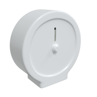 Portarrollos de papel higiénico, industrial, con disposición mural, carcasa de ABS de color blanco, para un rollo de papel de 240 m de longitud, con cierre mediante cerradura y llave. | ||